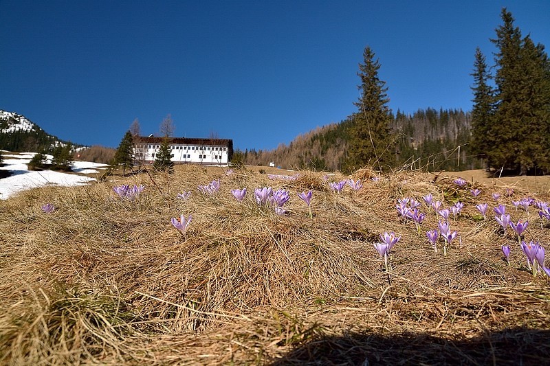 Kalatówki (dolna część1160–1200 m n.p.m., górna – 1200–1250 m n.p.m) – tym razem na krokusy wybraliśmy się pod koniec marca. Te piękne kwiaty, w tym roku zaczęły pojawiać się na polanach osłonecznionych, gdzie śnieg się roztapiał tworząc miejsca z alejkami ze śniegu, po których można było chodzić i podziwiać. Ze względu na coraz większe zainteresowanie turystów tymi kwiatami, nie można chodzić po polanach pomiędzy krokusami, tylko podziwiać je z daleka nie depcząc ich, a to wszystko jest pilnowane przez wolontariuszy TPN. My mieliśmy właśnie jeszcze możliwość chodzenia po śniegu i robienie zdjęć z bliska nie narażając kwiatów. A dodatkowo było mało turystów, co nam ułatwiło oglądanie bez tłumów.